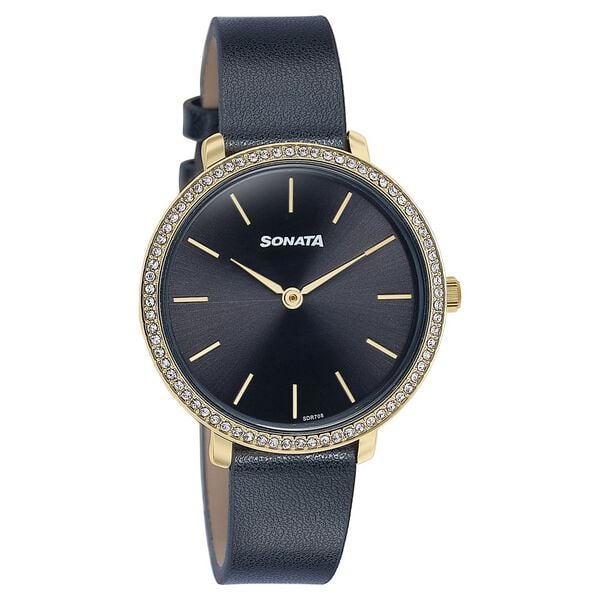 Sonata Wedding Edit Quartz Analog Watch for Women with Black Dial & Leather Strap – 87080YL02