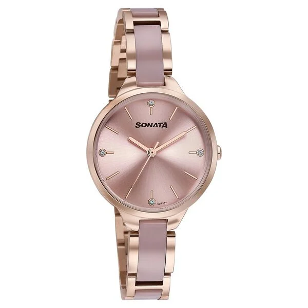 Sonata Wedding Edit Quartz Analog Watch for Women with Pink Dial & Stainless Steel with Acetate Strap – 87065KD04