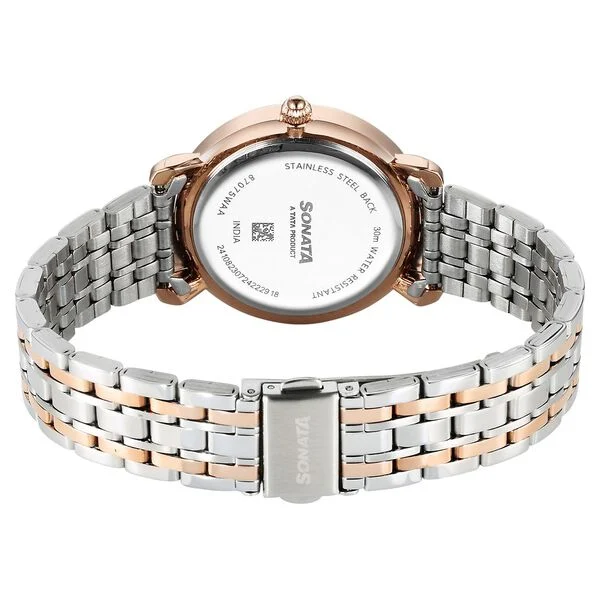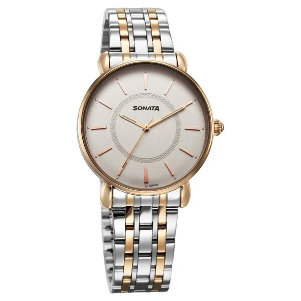 Sonata Wedding Quartz Analog Watch for Women with Off White Dial & Stainless Steel Strap – 87075KM01